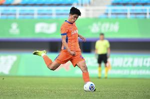 泰山队的战术思路很明确,那就是防守反击。比赛开始前,泰山队进入场地热身的时间较晚,韩鹏一直站在场内观察球员的训练,泰山队射门训练环节的整体命中率并不高,于金永有多次精彩扑救。