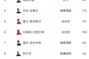 车手积分榜方面,诺里斯缩小了与皮亚斯特里的差距,两人的差距仅有9分,维斯塔潘继续排名第三。