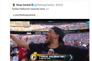 就在纽约附近的新泽西观众们给哈利伯顿送上了巨大的嘘声,但是哈利伯顿和在纽约打球时一样地享受,他不断挥手示意现场观众“嘘声再大一点”。