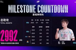 体育资讯8月6日讯 今日,LPL第三赛段将迎来BLG对阵JDG的比赛,赛前官方数据显示,Bin选手距离3000助攻里程碑仅差8次,排名助攻榜第四位。