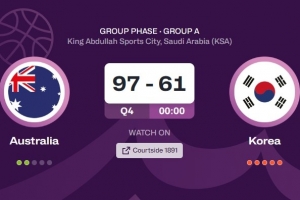 体育资讯8月6日讯 今天结束的一场男篮亚洲杯小组赛,澳大利亚97比61大胜韩国36分。