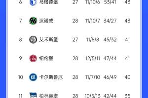 在目前德乙积分榜上,汉堡28轮52分领跑,科隆50分第二,凯泽斯劳滕少赛1场积46分排在第三。本赛季德乙目前还有6轮比赛。