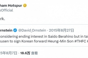 知名记者David Ornstein在2015年夏窗社媒发文,透露热刺正在商谈引进勒沃库森前锋孙兴慜,不过当时一些球迷并不看好这笔签约。