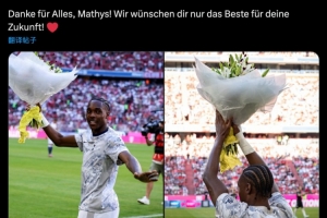 拜仁官方社媒写道:开球前,拜仁正式送别马蒂斯-特尔!