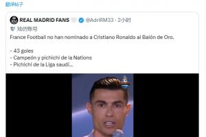 皇马球迷号:“法国足球没有将C罗列入金球奖候选名单中,他打进了43球,是欧国联冠军和金靴、沙特联金靴、在欧国联决赛进球,这一切都是在他40岁时做到的。”