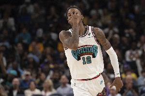 几天前,莫兰特朝勇士替补席比开枪手势,被联盟调查并警告,随后他在对阵热火的比赛中再次“开枪”庆祝。