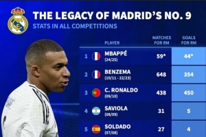 体育资讯8月9日讯 皇马官方宣布,恩德里克将身穿9号球衣,德国转会市场盘点了皇马近10位9号球员。