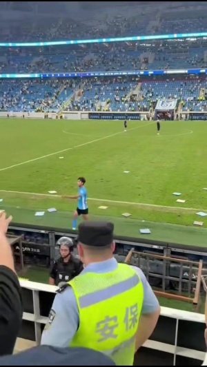 根据现场拍摄画面,有情绪激动的球迷跳下看台。