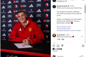 塞斯科社媒连发三条动态,晒出与曼联签约的相关照片,表达自己的喜悦之情。