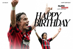 体育资讯8月9日讯 今天是意大利足坛名宿因扎吉的52岁生日,老东家米兰为他送上祝福。