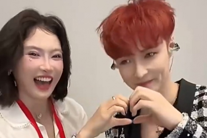体育资讯08月10日讯 吴艳妮现身观看张艺兴成都站演唱会,艳妮晒出与张艺兴在后台互动的视频,两人一起比心。