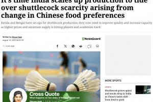 《印度快报》还提到,尽管一项体育运动的命运取决于中国人喜欢吃猪肉还是鸭子,这看起来非常荒谬,但目前这项运动的现状确实如此。