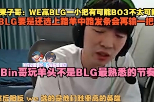Cryin:WE赢BLG一小把有可能BO3不太可能,BLG要是还选上路羊中路发条会再输一把,Bin哥玩羊头不是BLG最熟悉的节奏.