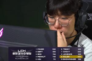 体育资讯4月6日讯 在今天进行的GEN对阵T1的比赛中,GEN下路选手Ruler迎来LCK生涯第600场比赛。而他也成为LCK历史第九位登场600场比赛的选手。