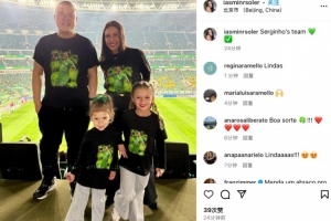 塞尔吉尼奥妻子今日更新社媒,晒出自己带两个孩子现场观战的照片,并配文写道:“塞尔吉尼奥所效力的球队。💚”