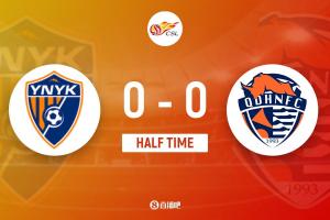 上半场比赛结束,云南玉昆主场暂时0-0战平青岛海牛。