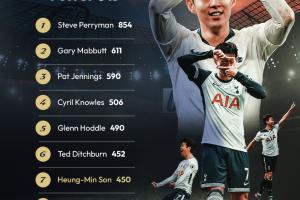 现年32岁的孙兴慜,2015年8月加盟热刺,目前已代表球队出场449场,打进173球,贡献96次助攻。