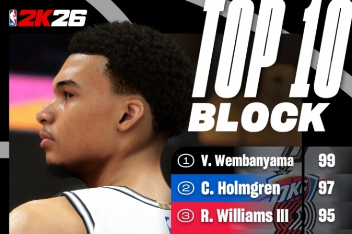 体育资讯08月14日讯 NBA2K官方晒出了NBA2K26盖帽能力值前十的球员。