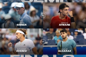 半决赛,阿尔卡拉斯将和兹维列夫隔网相对,辛纳将对阵资格赛选手阿特玛纳。