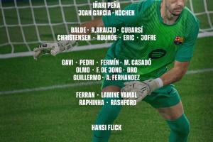 中场:加维、佩德里、费尔明、卡萨多、奥尔莫、德容、德罗、吉列-费尔南德斯