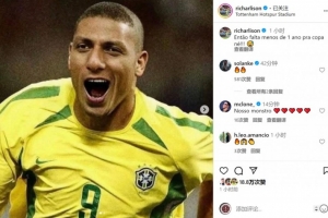 理查利森赛后更新社媒动态,晒出将身穿巴西9号的阿福头大罗P成自己的照片,配文:“那么离世界杯还有不到一年了,对吧!”