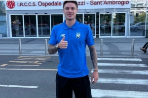 扎莱夫斯基已经抵达圣安布罗焦医院,接受加盟亚特兰大之前的第一部分体检,球员面带微笑。