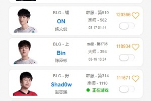 体育资讯8月19日讯 LPL第三赛段BLG不敌iG后,今日Bin上线打了一把单排就下线了,Shad0w连续打了三把,而中下辅的Rank记录最后均在8月17日凌晨。