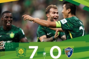 北京国安主场7-0战胜云南玉昆,球队历史上第7次晋级足协杯决赛