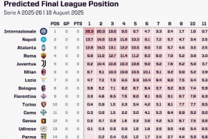 体育资讯8月21日讯 opta通过超级计算机预测本赛季意甲排名,国米有35.9%的概率夺冠,在夺冠概率上那不勒斯、亚特兰大分列二三位。