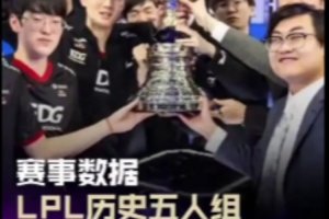 体育资讯8月21日讯 英雄联盟赛事发布数据,LPL历史五人组出场数TOP10:19 FPX第三,21 EDG第一。