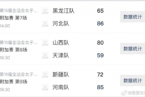 今天全运会女篮成年组附加赛继续在安徽合肥进行,其中山西拿下天津,成为最后一支晋级决赛圈的球队。这样附加赛全部结束,河南、新疆、山西成功晋级全运会女篮决赛圈。