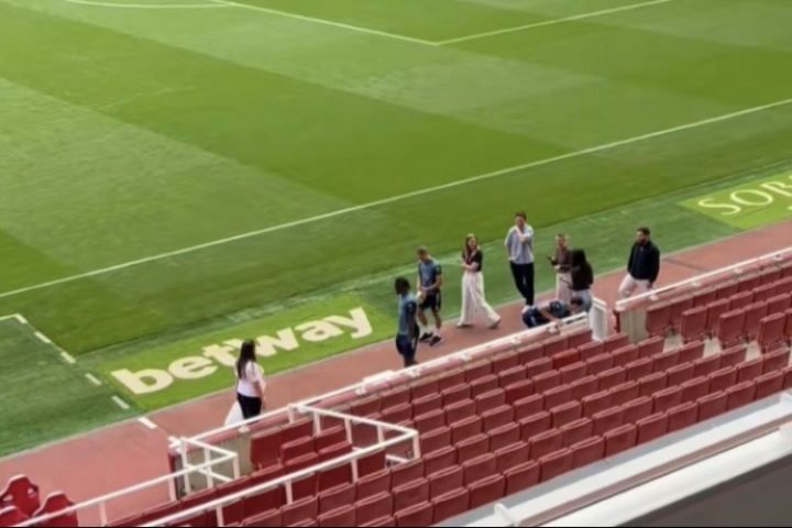 球迷晒出水晶宫球星埃泽出现在阿森纳主场酋长球场,据此前罗马诺报道,这位27岁的攻击手转会费超6000万镑。