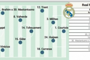 前锋:迪亚斯/马斯坦托诺、姆巴佩、维尼修斯