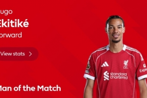 此役埃基蒂克为利物浦破门,英超官方宣布,他当选本场比赛最佳球员。