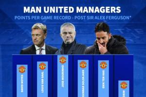后弗格森时代曼联主帅场均得分↓