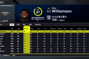锡安87全队最高,新援普尔80,特雷-墨菲82,德章泰-穆雷和赫伯特-琼斯均为81,米西79,阿尔瓦拉多77。