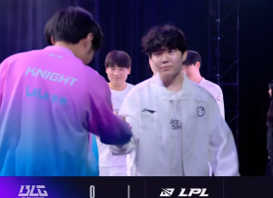 体育资讯8月30日讯 在此前的LPL常规赛焦点战中,iG成功横扫BLG取胜;而有网友在论坛中发帖讨论,为什么Rookie在赛后面对BLG其他四人时都有鞠躬致意,但面对Knight则是直接随意碰拳然后表情也不太对。