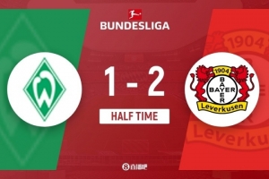 半场-不莱梅1-2勒沃库森 希克破门蒂尔曼凌空抽射施密德点射