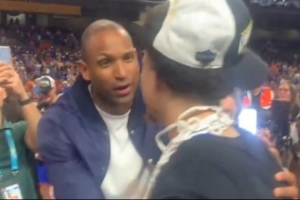 赛后,佛罗里达大学两冠名宿、凯尔特人中锋霍福德现场祝贺母校夺冠,也祝贺小沃尔特-克莱顿夺得最杰出球员(MOP)!