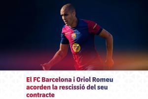 巴塞罗那足球俱乐部感谢奥里奥尔-罗梅乌展现出的职业精神、奉献态度与全心投入,并祝愿他未来好运相伴、一切顺利。
