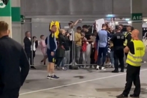 赛后,约克雷斯为球迷签名,一位年轻球迷在获得签名后兴奋欢呼。