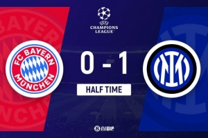 上半场比赛结束,拜仁慕尼黑主场暂时0-1落后国际米兰。
