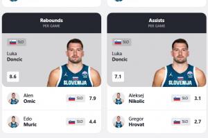 此外,东契奇场均得分、抢断、效率值都是赛会第一,助攻第二。