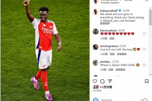 萨卡社媒晒出自己竖起大拇指庆祝的照片,致谢球迷:“我们想要,你们就给了我们一切,谢谢!在马德里也要保持同样的能量,任务还没有完成!”