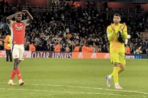 社媒的视频中球员们纷纷向球迷致谢,阿森纳社媒配文:心连心,在一起。