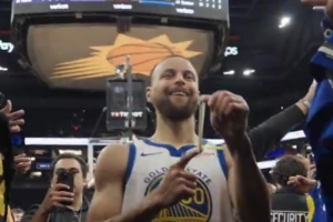 赛后,勇士球星库里在离场时受到客场观众的热情欢迎,库里也停下来将腕带弹到观众席,对球迷们的爱给予了回应。
