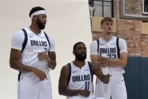 体育资讯9月30日讯 独行侠新赛季媒体日正在进行中,NBA官方晒出了球队三位状元欧文、浓眉还有弗拉格拍摄定妆照的花絮。