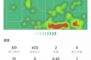 马斯坦托诺本场数据:3次射门0射正,17次对抗8次成功,获评6.7分