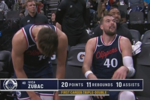 赛后,祖巴茨接受了记者采访。谈到自己最终助攻博格丹投进三分,达成三双,他表示他告诉博格丹,他(博格丹)再也不需要为晚餐买单了。