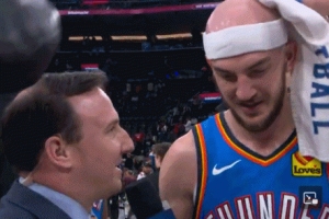 赛后,雷霆悍将卡鲁索在场边接受采访,队友们照旧进行整蛊,他们不但给卡鲁索的光头抛光、叠毛巾,还给采访的记者也精心打扮了一番。最后亚历山大出面拿开了卡鲁索头顶的毛巾,尽显大哥风范。